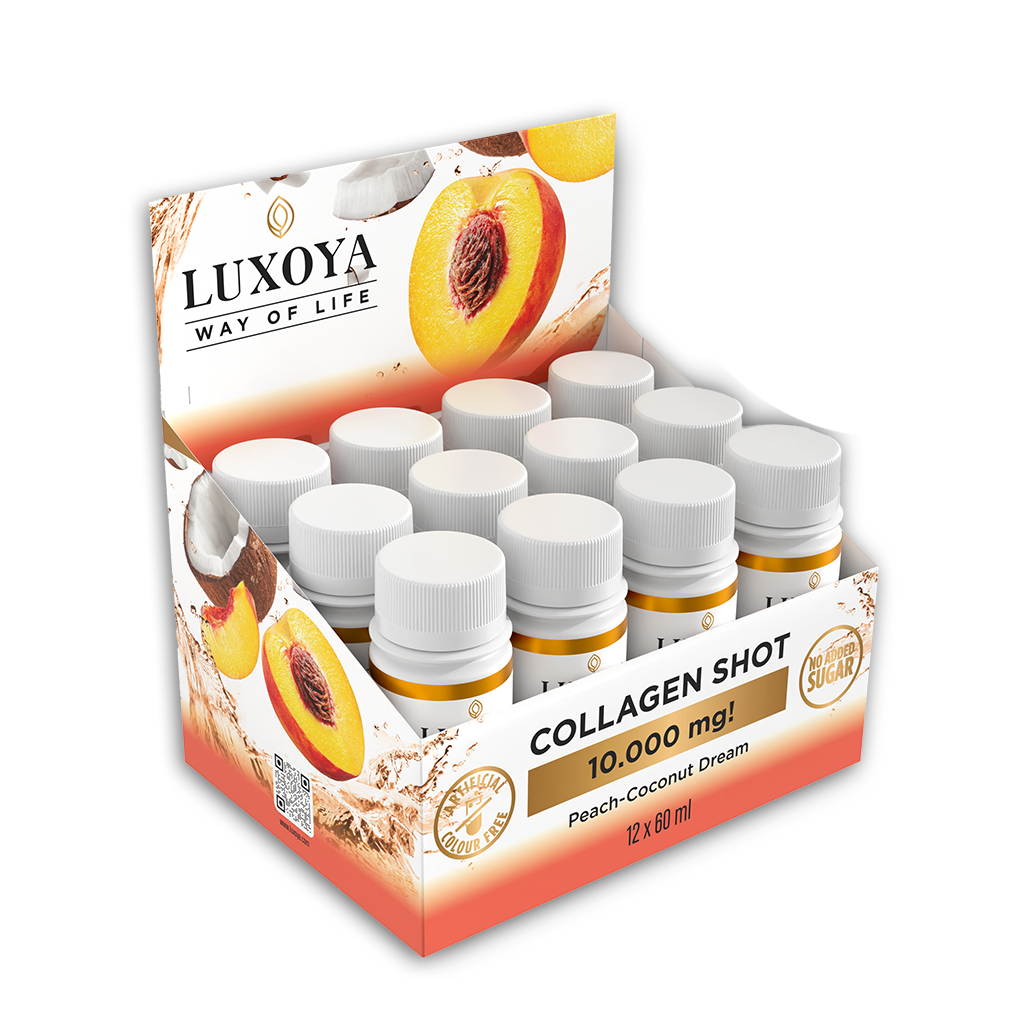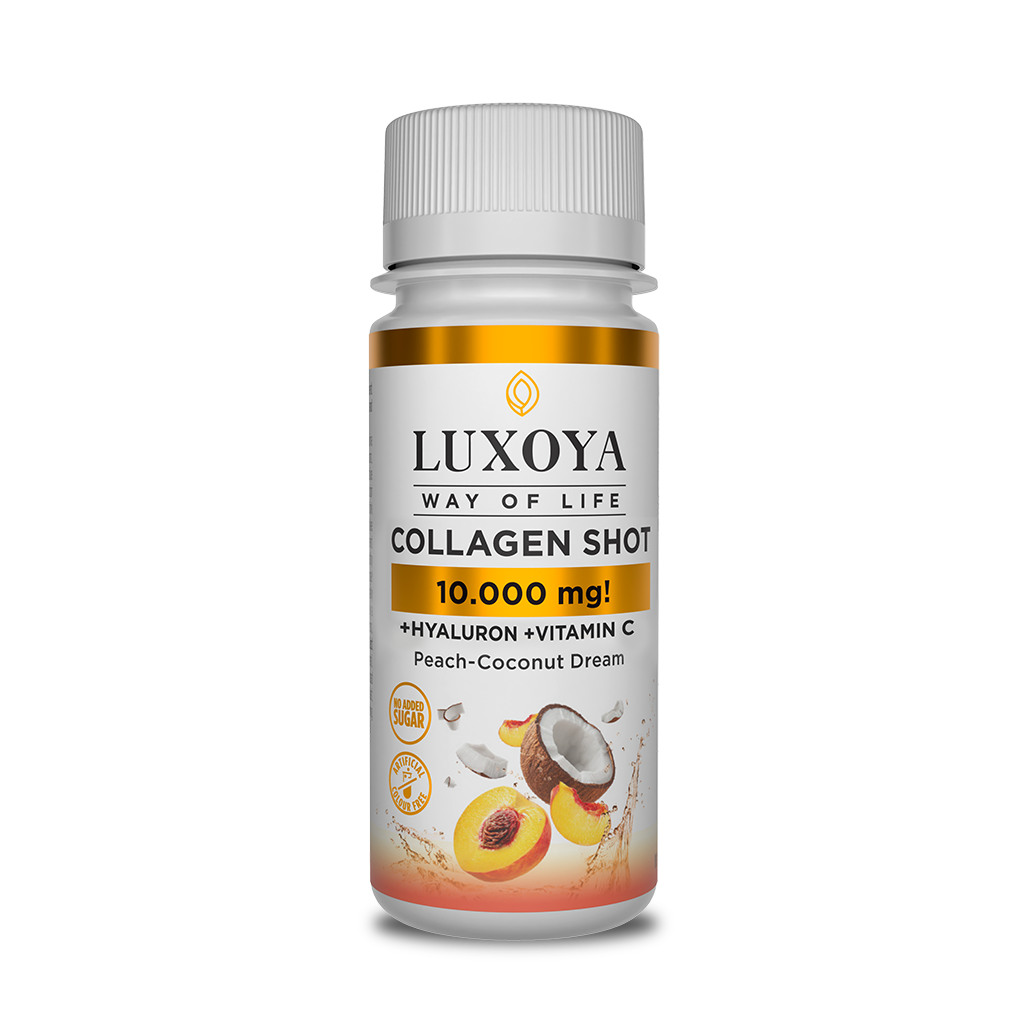 COLLAGEN SHOT je praktický 60 ml tekutý doplnok stravy, ktorý ľahko začleníte do každodenného života. Jeho vysoký obsah hydrolyzovaného kolagénu, kyselina hyalurónová a pridaný vitamín C poskytujú kombinovanú podporu v jednom praktickom balení. Jeho ochutené verzie poskytujú intenzívny chuťový zážitok a zároveň podporujú zachovanie vašej krásy a vitality.